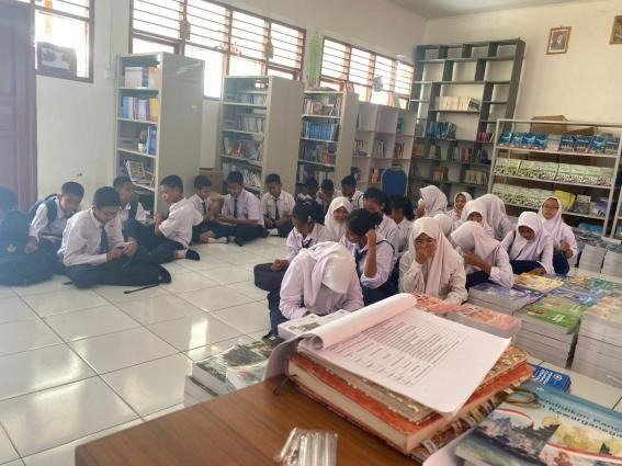 - ) Sesuai dengan jadwal, setiap guru mata pelajaran membawa peserta didik satu kelas untuk berkunjung ke perpustakaan.